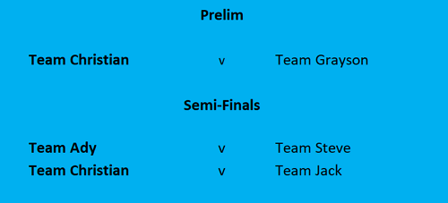 | Becaue Leigh cannot now make Finals Night, he will be substituted by Matt | ||||