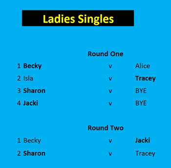 | Because of available time, the heats were played out to finalists. Congratulations to Sharon & Jacki | ||||